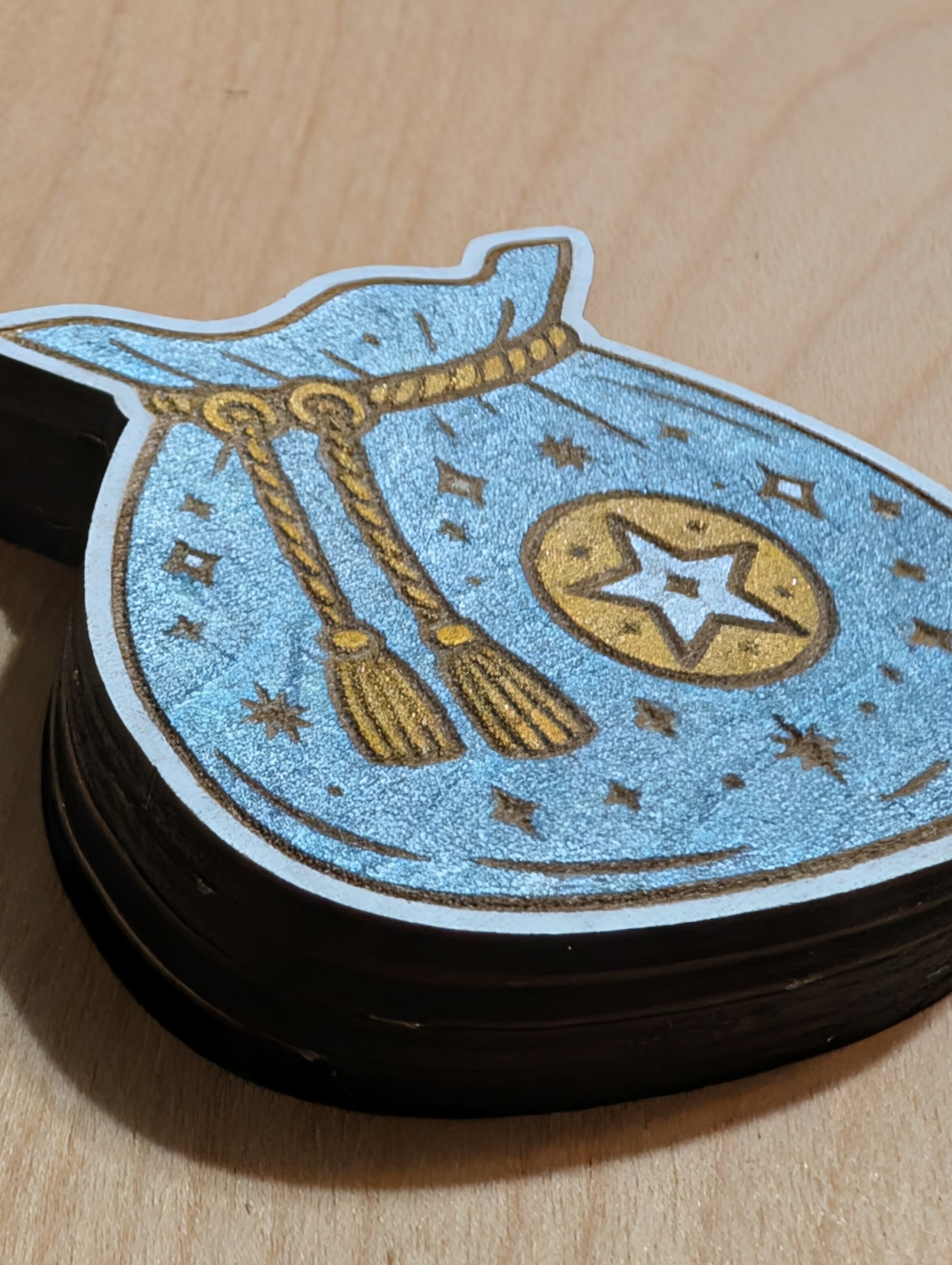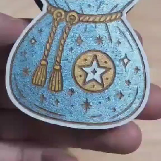 Add a touch of D&D magic to your space with the Bag of Holding Magnet! Each wooden magnet is handcrafted and unique, thanks to natural wood variations. Plus, there's a surprise hidden inside—just like a real Bag of Holding! Please allow 5-8 days for crafting; orders ship every Tuesday and Friday via Chit Chats. Ready to hold your paper notes or mystical secrets? This playful magnet is the perfect quest companion!