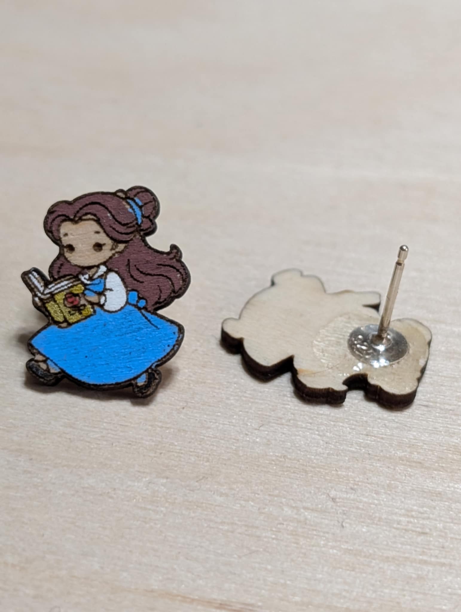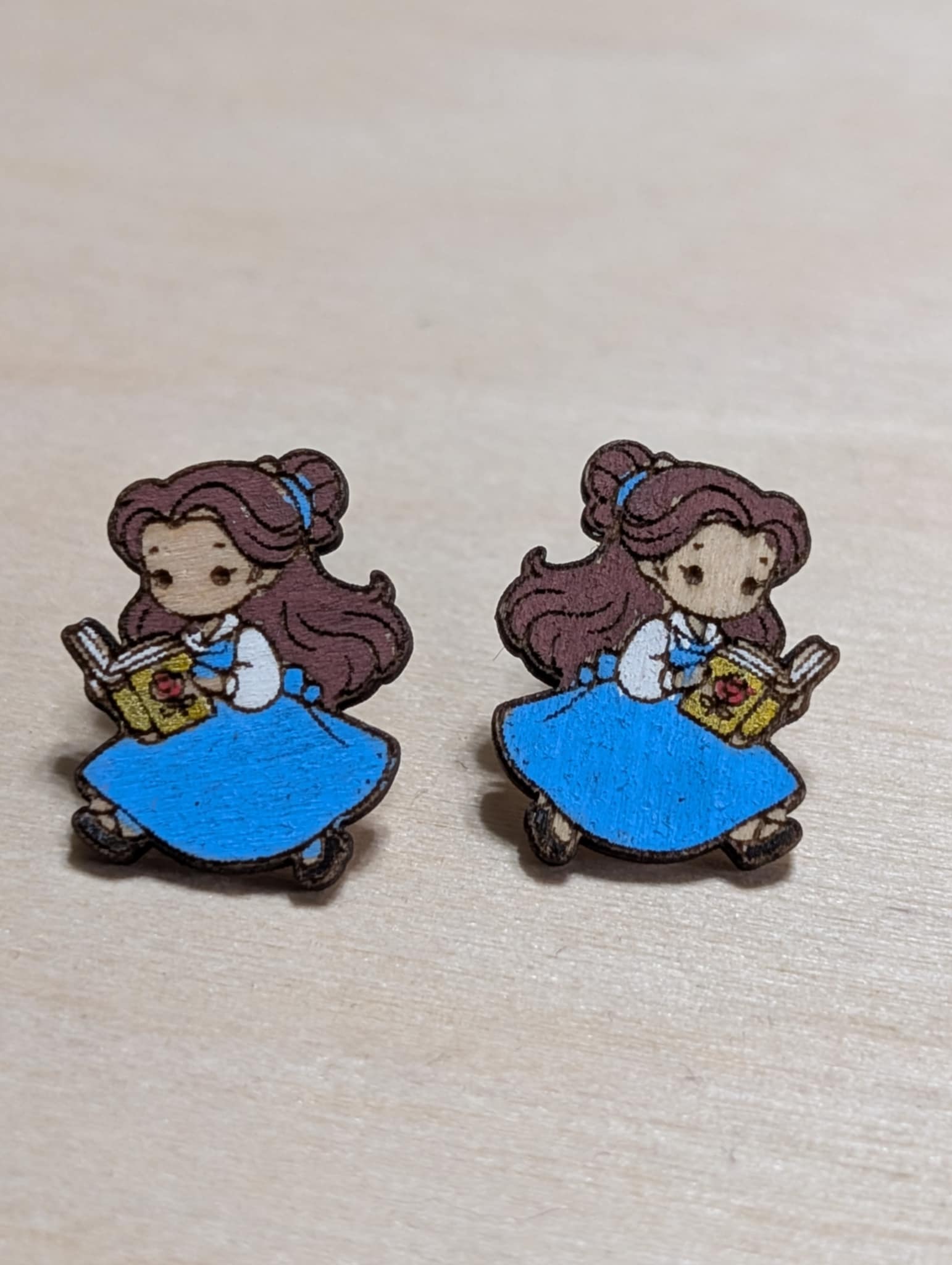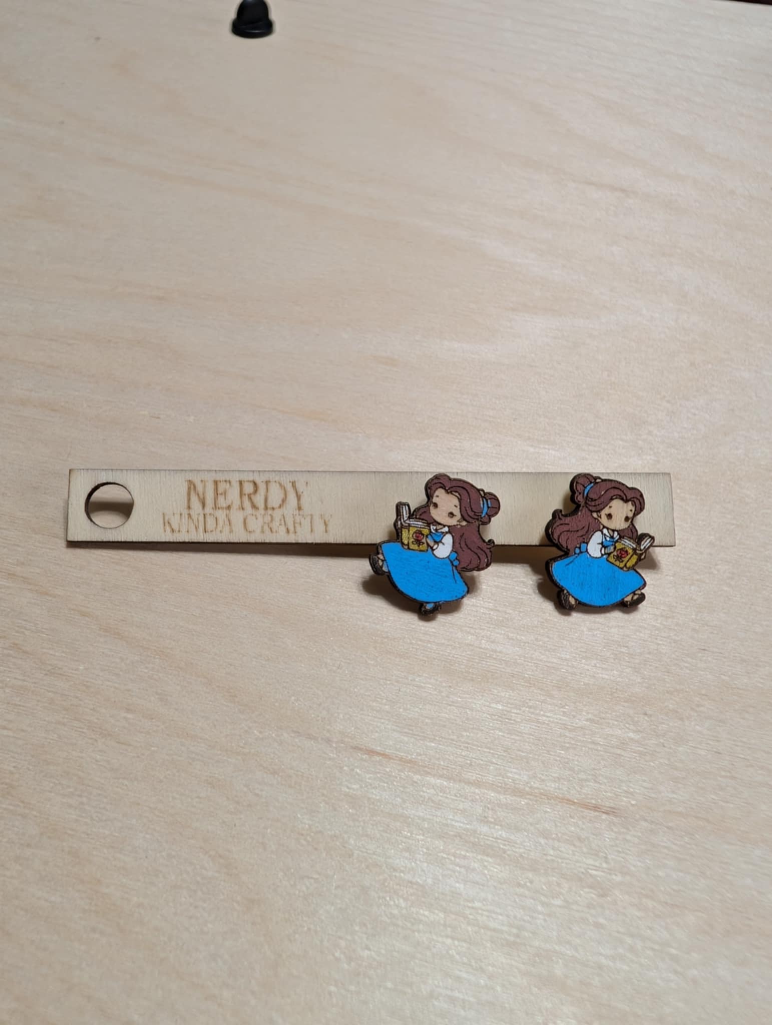 Adorn your ears with these whimsical Blue Dress Girl Reading a Book Studs! Each pair showcases a bookworm in a lovely blue dress, hand-crafted from unique wood pieces that give your studs one-of-a-kind character. Allow 5-8 days for creation plus 10-15 days shipping via Canada Post. Perfect for literary lovers and fashion-forward bibliophiles alike!