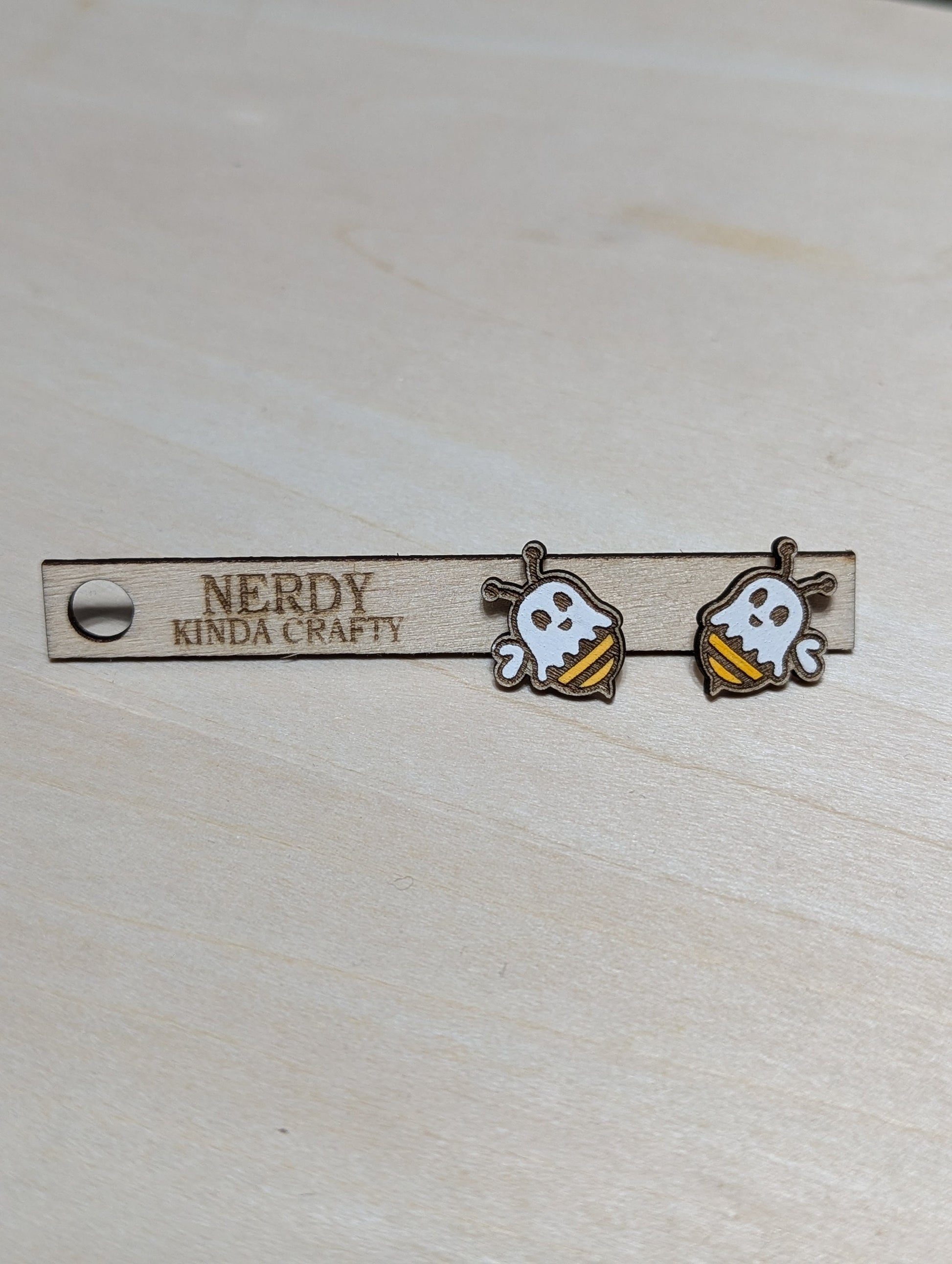 Introducing the whimsical Funny Ghost Bees or "Boo-Bee" studs! Crafted from sterling silver and featuring laser-cut and engraved wood details, these earrings are as unique as they are cute. Perfect for those with sensitive ears, these hypoallergenic studs are a fun addition to any jewelry collection. Add a touch of playful charm to your outfit with these adorably spooky studs!