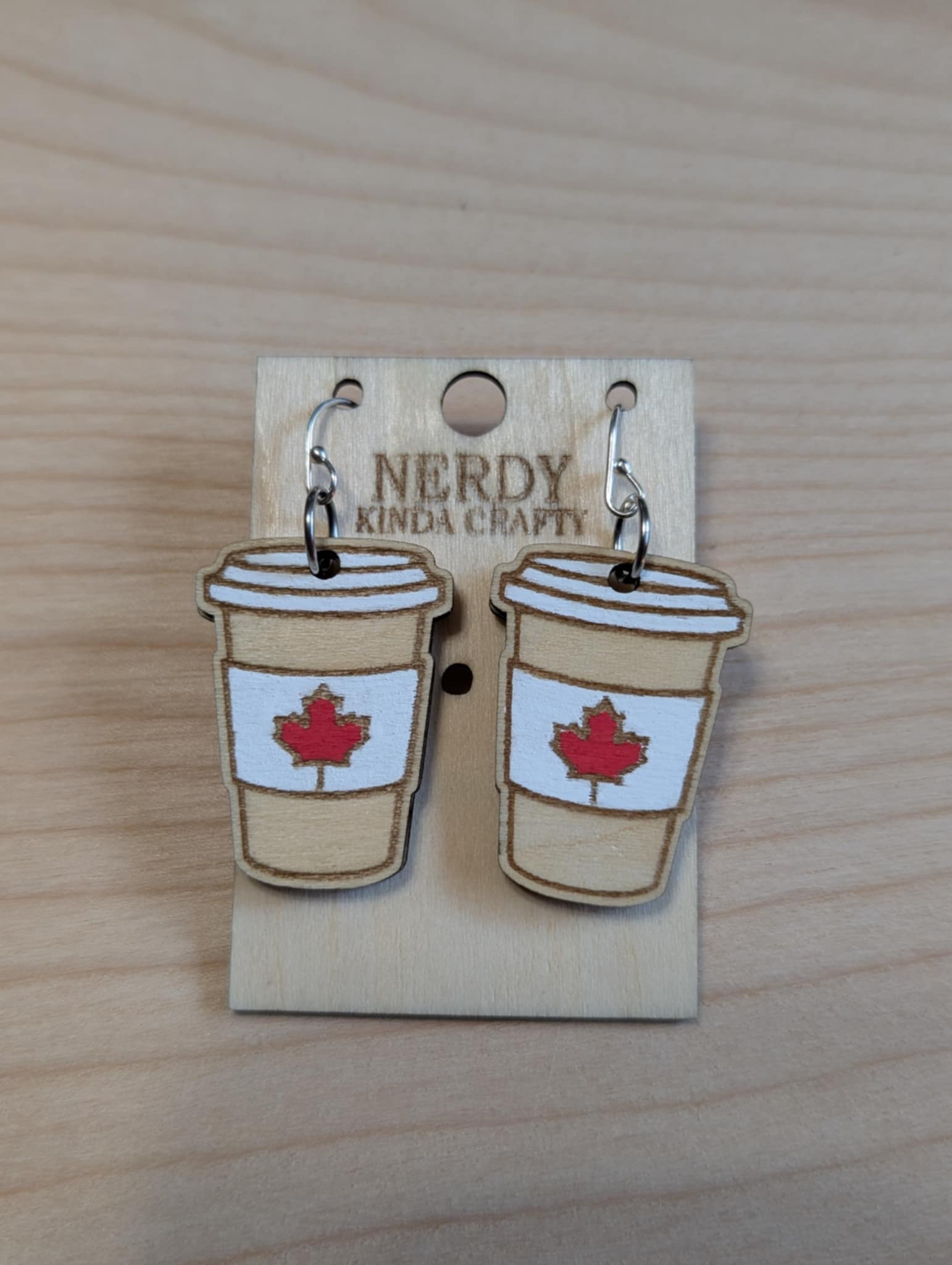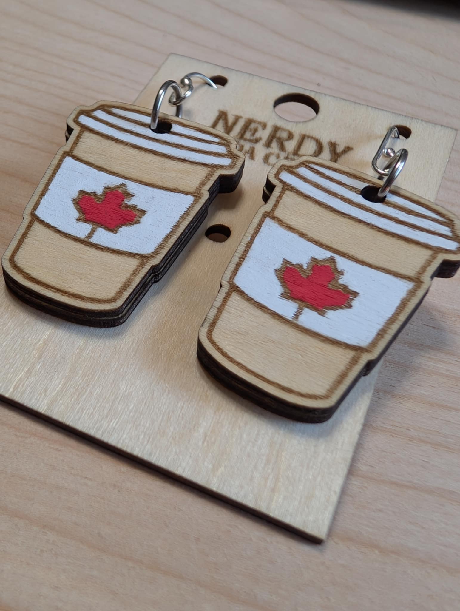 Spice up your coffee game with Canadian Coffee Dangles! These laser cut and engraved earrings are hand painted on hypoallergenic sterling silver for maximum style and comfort. With a 3-5 day packaging time and 10-15 day shipping, they'll be sure to bring some buzz to your wardrobe. (Java-ly satisfied customers only!)