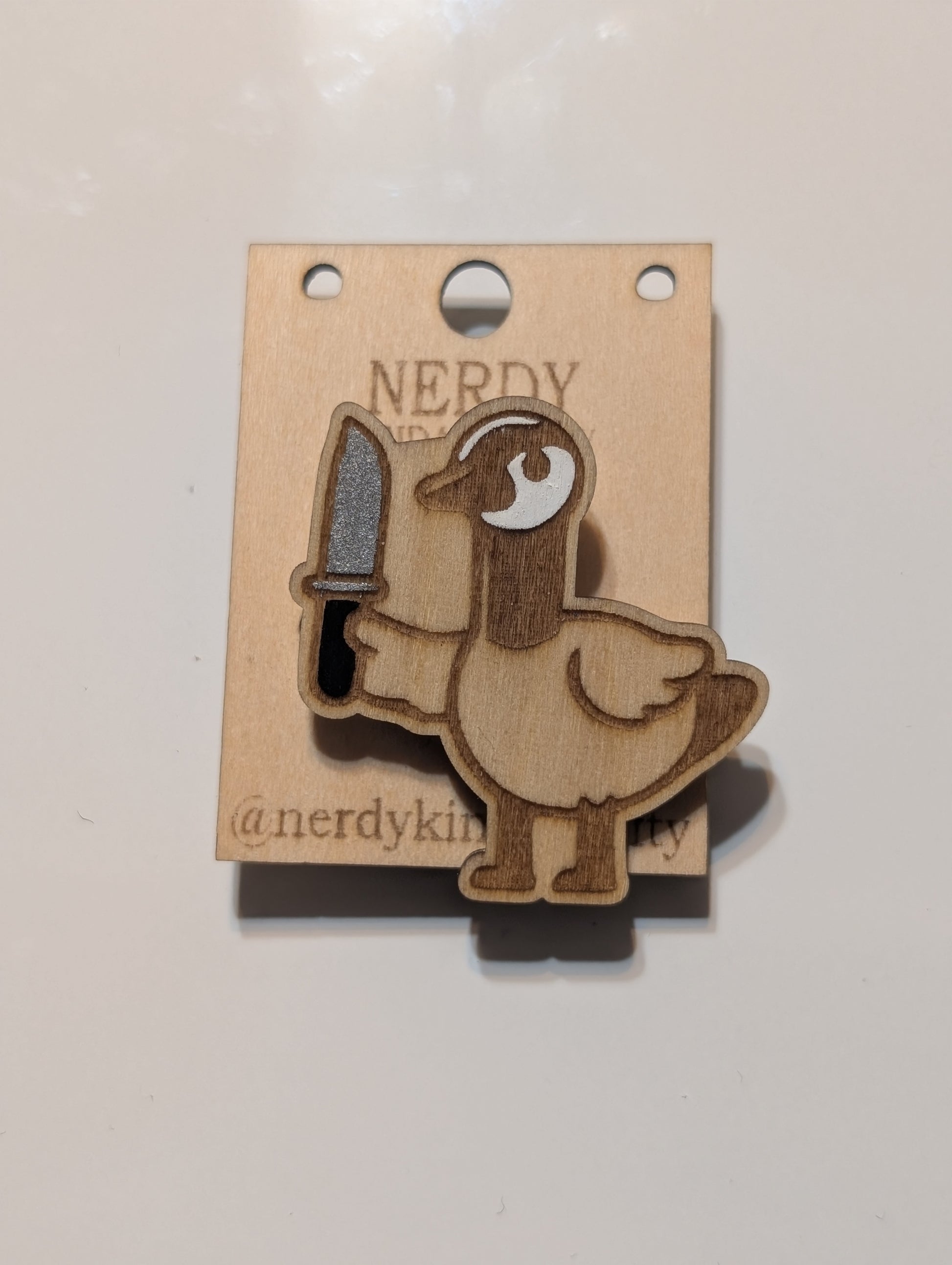 Fly high in style with our Canadian Goose Pin! Expertly laser engraved and charmingly hand painted, this pin is the perfect accessory for any bird lover. Show off your love for Canada and geese with this quirky and playful addition to your collection. (Note: not actually made of real geese!)