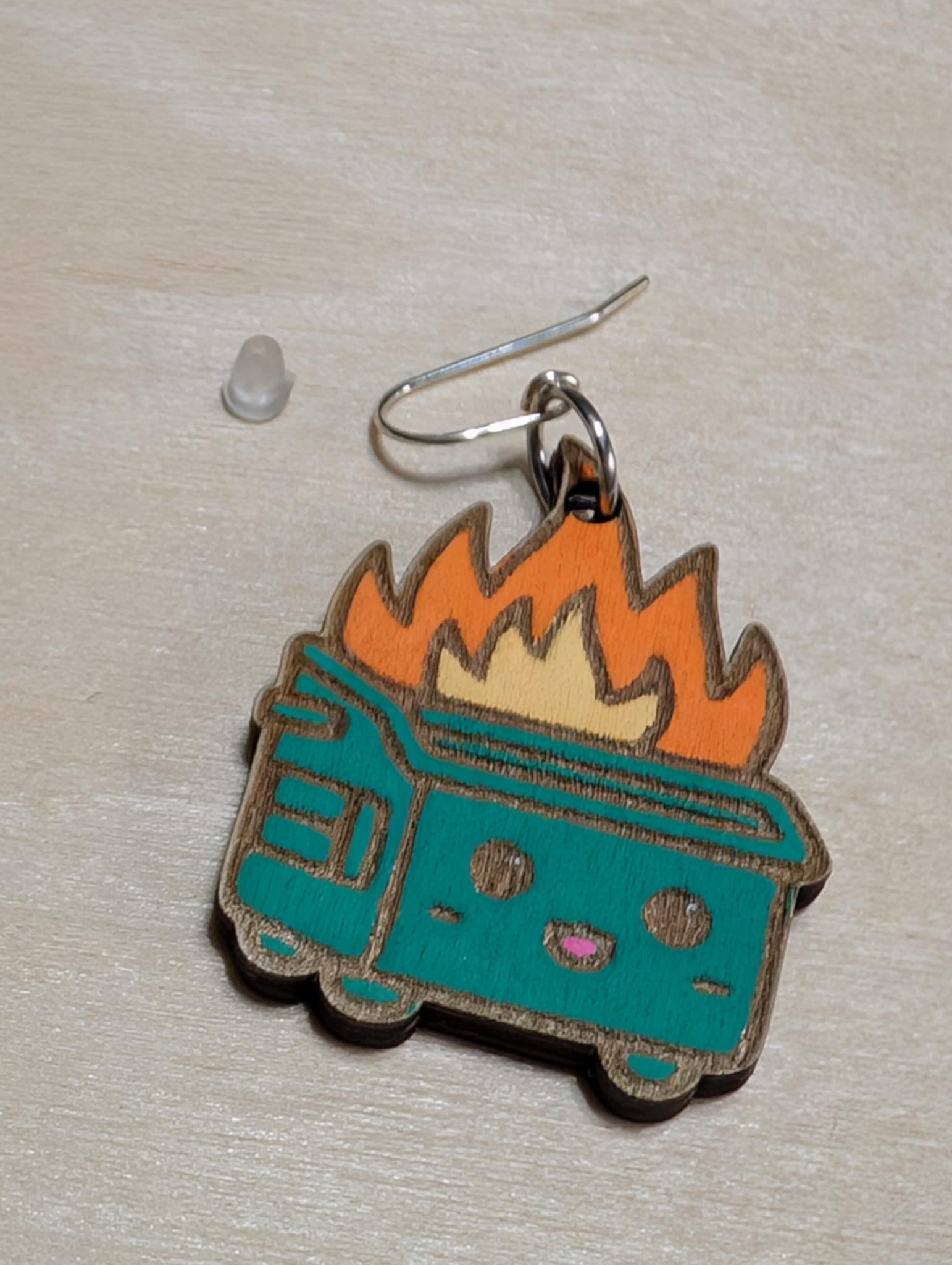 Embrace the chaos with our Dumpster Fire Dangles! These playfully crafted earrings celebrate life's little disasters in style. Each pair features unique wood grain patterns, making your fashion disaster absolutely one-of-a-kind. Allow 5-8 days for creation plus 10-15 days shipping via Canada Post. Because sometimes, the only appropriate response to life is to wear a tiny dumpster fire.