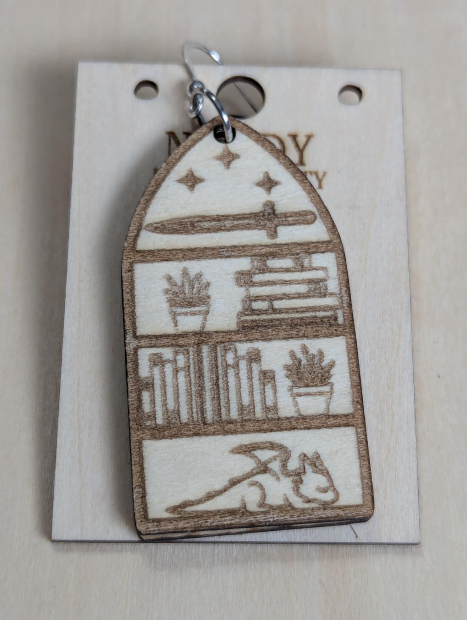 My order was customised but the design is nearly identical. These are the lightest earrings ever, exactly what I was looking for, yet filled with details. They're absolutely perfect for any fantasy lover who also enjoys bookish accessories. I love the feel and colour of wooden earrings, so when I found Nerdy Kinda Crafty I was beyond happy!