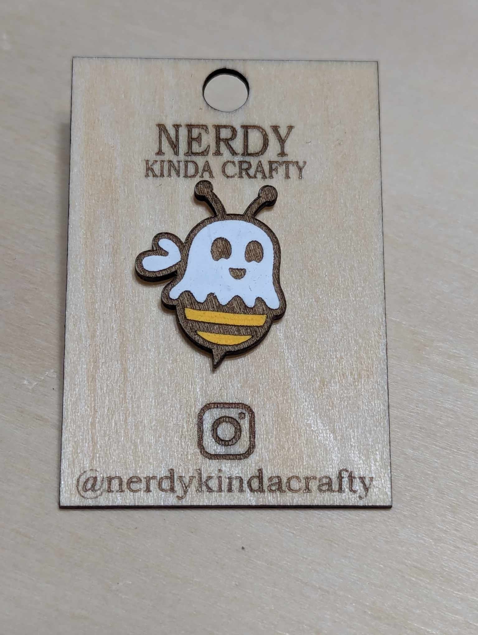 Crafted with precision, the Boo Bee Pin is a delightful accessory that adds a touch of charm to any outfit. Made from laser-cut and engraved wood, this lightweight pin showcases intricate details that catch the eye. Whether you're looking to elevate your look or express your unique style, the Boo Bee Pin is the perfect choice for a subtle yet distinctive flair.