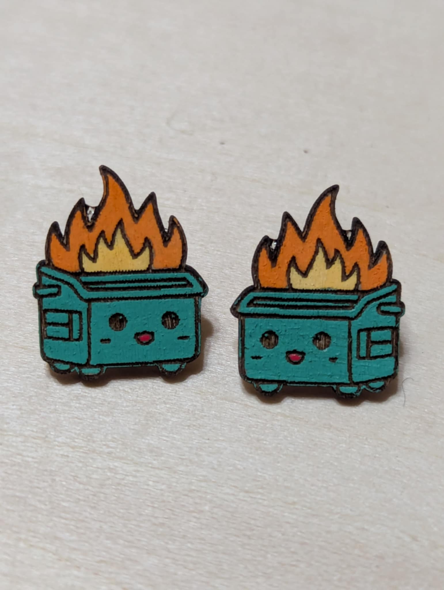 Light up your ears with our Dumpster Fire Studs. Each pair is laser cut and engraved, hand painted with hypoallergenic sterling silver. Our unique packaging takes 3-5 days, but our one-of-a-kind style will steal the show in 10-15 days. Don't miss out! 🔥