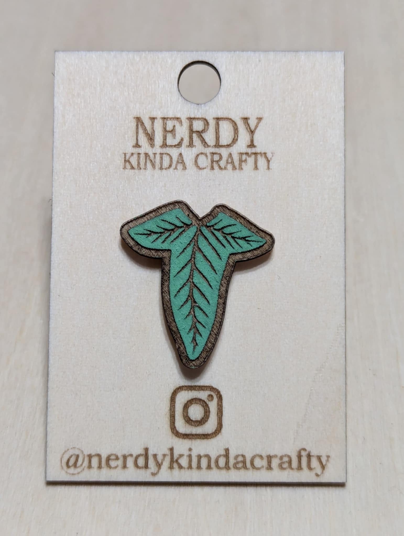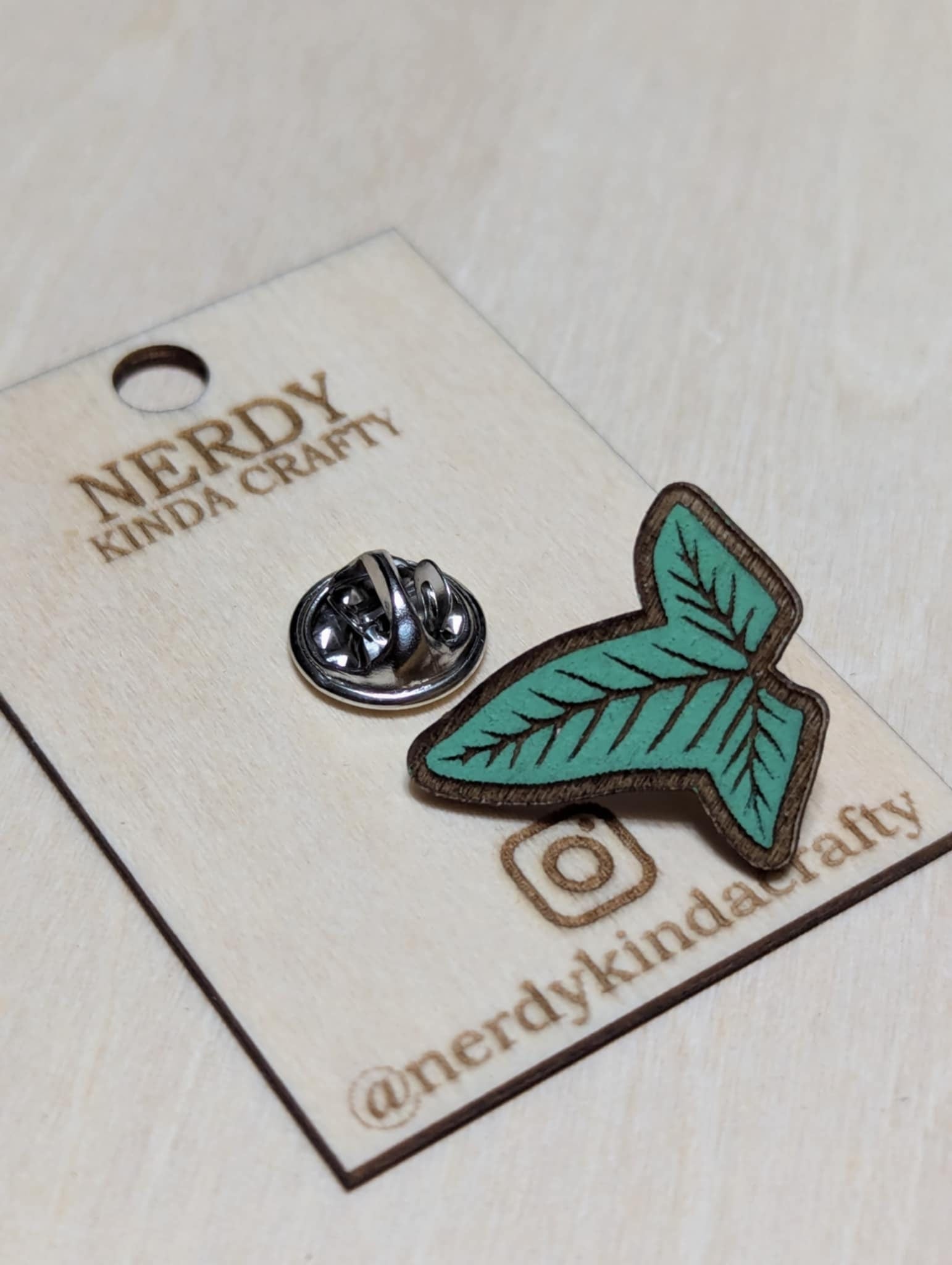 Crafted with precision and inspired by the magical leaf, this pin is a unique accessory that combines elegance with fandom. Made from lightweight wood, each pin is laser cut and delicately engraved to capture the essence of the elf people. Wear this intricate piece to showcase your love for the epic fantasy world wherever you go.