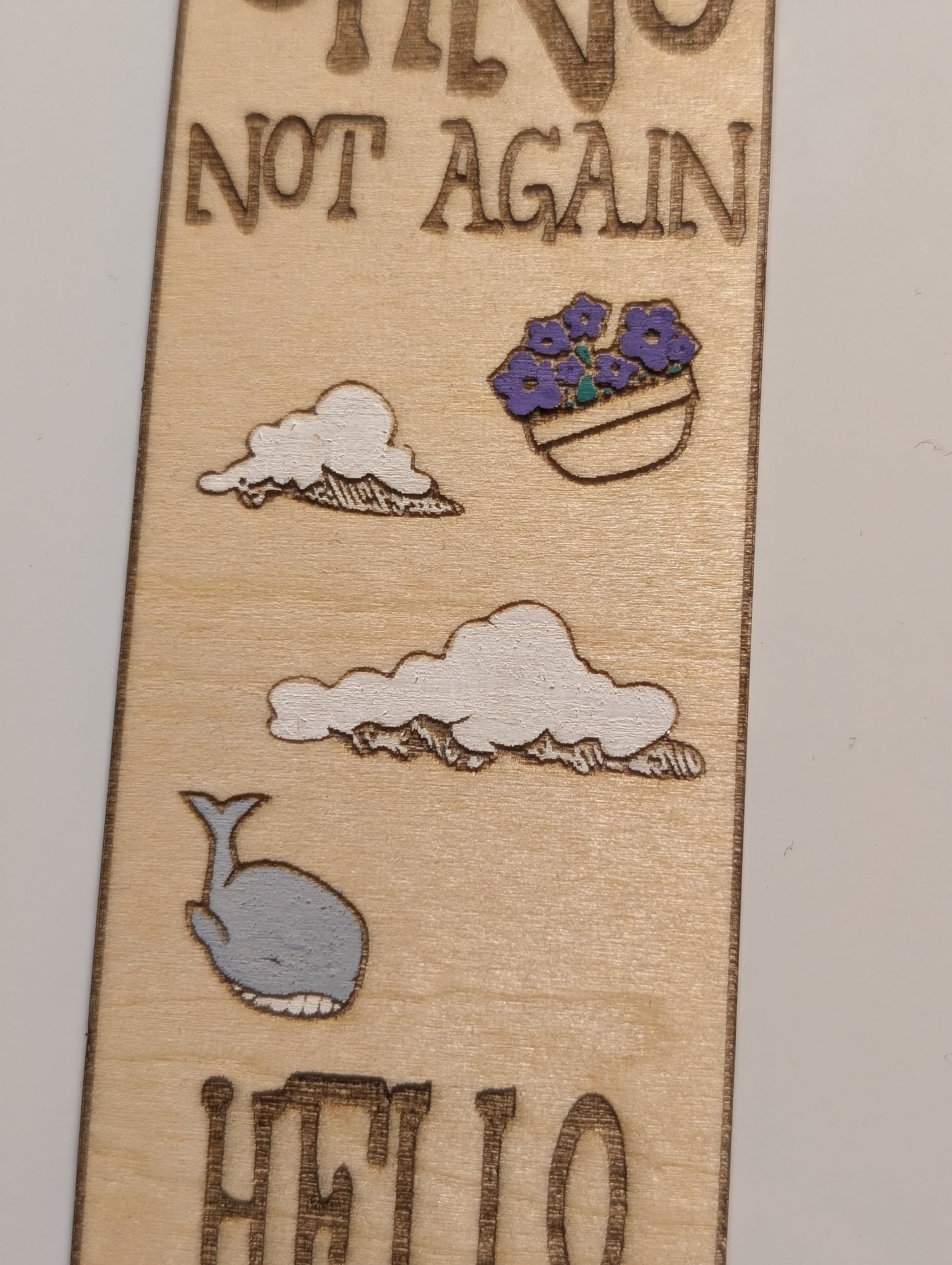 Don't Panic. These are just a tribute. Laser-cut and hand-painted wood bookmark. Made in Canada.