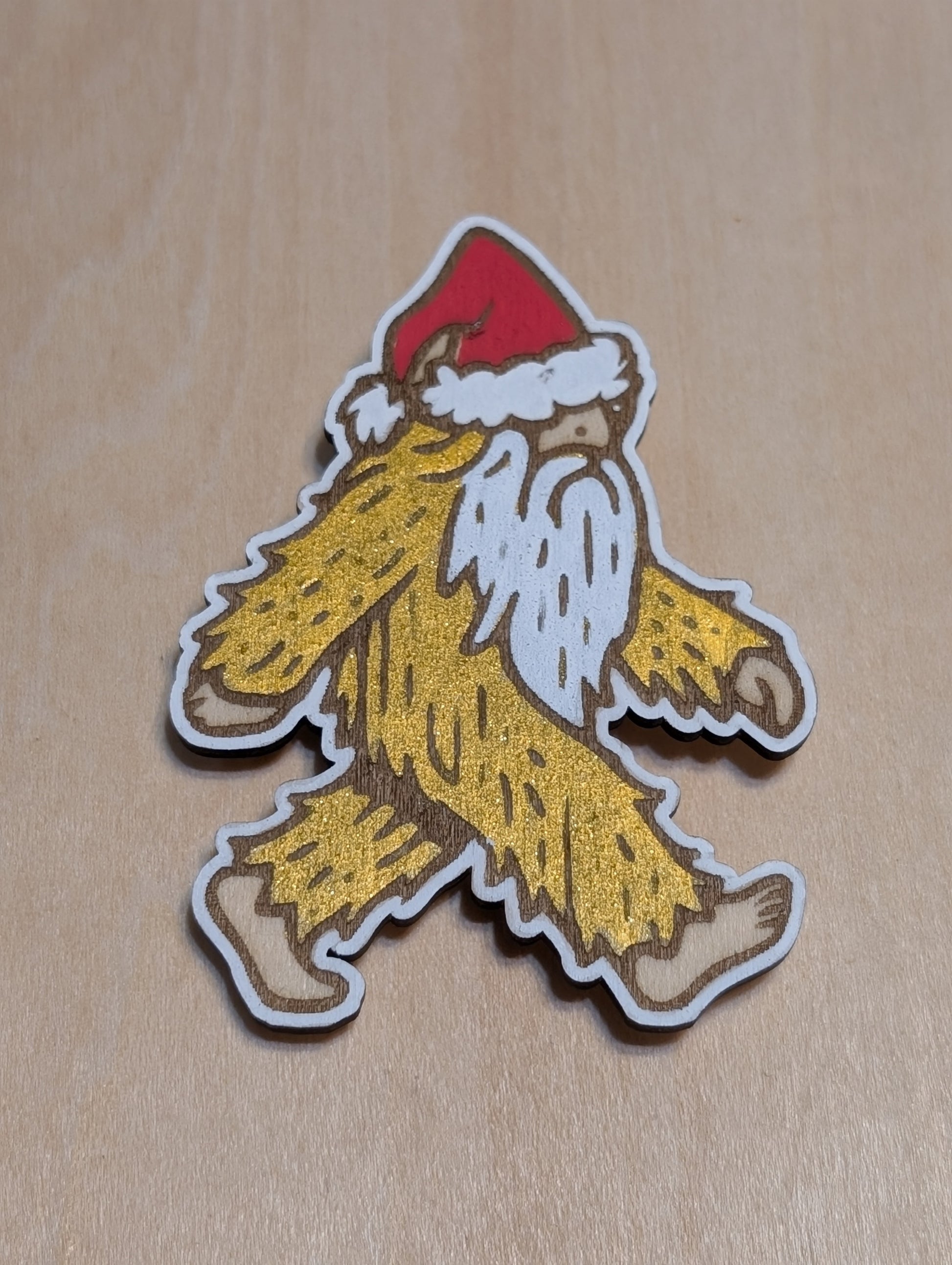 Introducing SantaSquatch - the perfect holiday accessory! Laser cut and hand painted with care, this wood accessory is available as a magnet or pin. Made in Barrie with high-quality materials, and shipped via Chit chats. Celebrate the season with style and support local artisans.