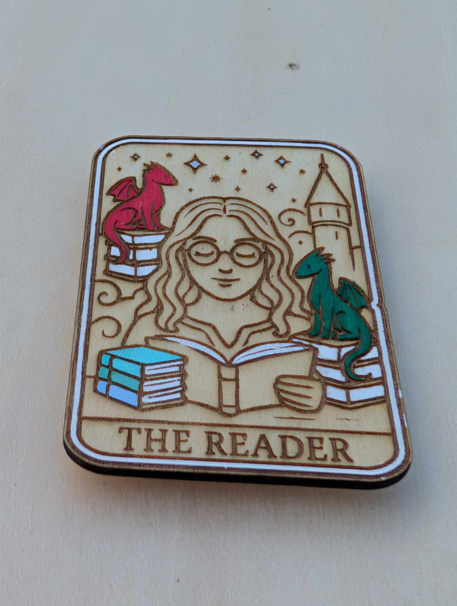 The Reader Tarot Magnet is a charming little piece crafted with care, each one uniquely shaped by the natural variations in wood. Please allow 5-8 days for creation, plus 10-15 days for delivery via Canada Post. Perfect for adding a touch of mystical fun to your fridge or workspace!